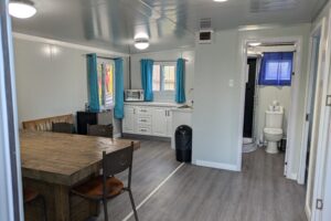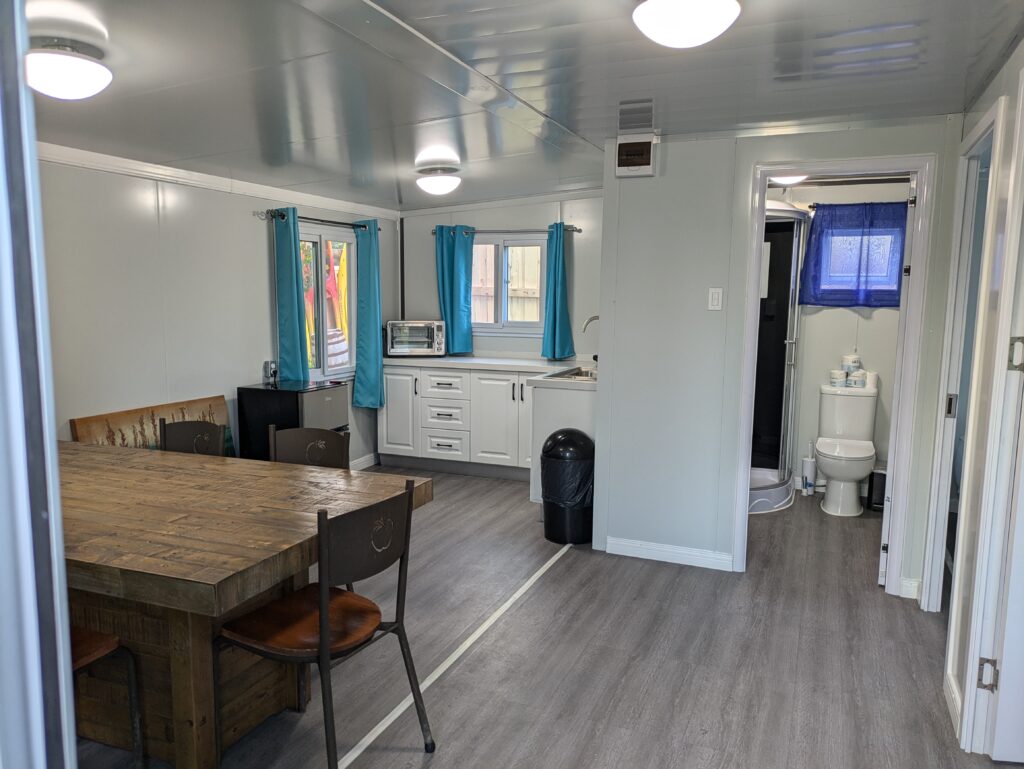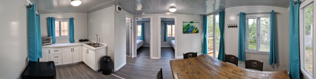La mini maison est une habitation idéale pour ceux qui désirent profiter de la rivière Bonaventure, du terrain de jeux et de la proximité avec les activités sur le site.